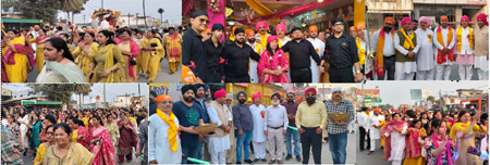 गदरपुर। पूज्यपाद संत श्री बापू कल्याण दास जी महाराज परम पूज्यनीय विश्व वंदनीय संत श्री बापू ज्वाला सिंह जी महाराज जी की अपीम कृपा से व ब्रहम्मलीन महामंडलेश्वर संत श्री सुभाष बापू जी महाराज जी के शुभ आशीर्वाद से परम पूज्यनीय गुरु माॅं मिथलेश जी के पावन सानिध्य में संत कल्याण दास जी महाराज की स्मृति में चल रहे 39वें महायज्ञ एवं संत सम्मेलन के अवसर नगर में विशाल ध्वजारोहण व शोभायात्रा निकाली गयी। शोभायात्रा बापू जी मंदिर से प्रारम्भ हुई जो अनाज मंडी, गूलरभेाज मुख्य बाजार से होते हुये प्रारम्भ स्थल मन्दिर में समाप्त हुई। शोभायात्रा में गुरु माॅ मिथलेश जी, बापू जालंधर बापू रविंदर दास जी, दौरागन दरबार बाबा पवन पूजारा जी रथ पर सवार थे। श्रद्धालु महिला व पुरुष संकीर्तन के साथ साथ चल रहे थे। विभिन्न धार्मिक संस्थाओं द्वारा जगह-जगह पर जोरदार स्वागत करते हुए प्रसाद वितरण किया गया। शोभायात्रा में जमकर आतिबाजी भी की गयी। समिति उपाध्यक्ष अशोक बांगा ने बताया कि 6 मार्च को सामूहिक हवन यज्ञ प्रातः 7 बजे, नामदान दीक्षा प्रातः 9 बजे एवं सत्संग प्रवचन एवं संकीर्तन प्रातः10 बजे से तीन बजे होगा। अटूट भण्डारा दोपहर 12 बजे से होगा। इस मौके पर समिति प्रधान बंशीधर गुम्बर, कार्यकारी अध्यक्ष आशु गुम्बर, सचिव सतीश बत्रा, कोषाध्यक्ष कृष्ण लाल अनेजा, उपाध्यक्ष अशोक बागा, पालिकाध्यक्ष मनोज गुम्बर, भापजा प्रदेश मंत्री गुंजन सुखीजा,राजेन्द्र पाल सिंह, नरेन्द्र ग्रोवर, इन्द्रपाल सिंह, अजीत कुमार भुसरी, राजकुमार भुड्डी, लेखराज नागपाल, अशोक धीर, सेामनाथ छाबड़ा, दीपक बेहड़, संदीप चावला, राहुल अनेजा, संजीव झाम, हिमांशु दुआ, गुलशन नारंग, सुरेन्द्र छाबड़ा, मदन गुंबर सतीश दुआ हंसराज गुंबर, टीकम खेड़ा, सतीश अनेजा, केवल नारंग, सतीश अनेजा, केवल नारंग, विजय सुखीजा, हरबंस कालड़ा, विपिन रेहलन,, केवल दुआ, सुनील छाबड़ा, हरीश गुम्बर, मदन ढ़ीगरा, कृष्ण लाल सुधा, राजकुमार अनेजा, अजय गम्भीर, अनिल अनेजा, राहुल बांगा,, टीकम खेड़ा, राजकुमार भुड्डी, अशोक धीर,, ओम प्रकाश दूमड़ा, बल्देव छाबड़ा, सुभाष खुराना, सतीश दुआ, अनिल गगनेजा, अंकित खेड़ा, अमित बेहड़, आशीष अनेजा, सुभाष डूमड़ा, सहित काफी संख्या में पुरुष व महिलायें श्रद्धालु शामिल थे।