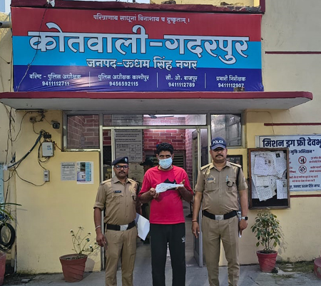 गदरपुर पुलिस ने बड़ी कार्यवाही करते हुए अवैध हथियार के साथ एक को गिरफ्तार किया गया। उसके पास एक तमन्चा 15 बोर व 01 जिन्दा कारतूस 15 बोर का बरामद किया गया। वरिष्ठ पुलिस अधीक्षक जनपद उधम सिह नगर द्वारा वर्तमान में संदिग्ध व्यक्तियों व अवैध शस्त्र/हथियार रखने वालों के विरुद्ध आवश्यक कार्यवाही हेतु चलाये गये अभियान के तहत दिशा निर्देश दिये गये थे। उपरोक्त आदेश निर्देशों के क्रम में पुलिस अधीक्षक अपराध /पुलिस अधीक्षक  काशीपुर तथा क्षेत्राधिकारी बाजपुर के कुशल पर्यवेक्षण मे तथा प्रभारी निरीक्षक गदरपुर के नेतृत्व में दिनांक 25-03-2026 को गदरपुर पुलिस टीम द्वारा सघन चैकिंग अभियान चलाया जा रहा था दौराने चैकिंग कलकत्ता चैराहे से कुआं खेड़ा की ओर श्मशान घाट के पास सकेनिया एक  व्यक्ति  आरिफ पुत्र नूर हसन निवासी ग्राम रायपुर मजरा हसीन गंज तहसील व थाना स्वार रामपुर  जनपद रामपुर उत्तरप्रदेश उम्र-40 वर्ष’  संदिग्ध प्रतीत होने पर उपरोक्त को रोका गया व जामा तलाशी से  उक्त व्यक्ति के कब्जे से  एक अदद तमन्चा 15 बोर व 01 अदद जिन्दा कारतूस 15 बोर बरामद किये गये। बरामदा तमंचा कारतूस के बारे में पूछने पर उपरोक्त ने बताया मैं नशे का आदि हूं। और तमंचा मैंने अपनी सुरक्षा के लिए रखा है। उक्त व्यक्ति को उसके जुर्म धारा 3/25 आयुध अधिनियम से अवगत कराते हुए  हिरासत पुलिस किया गया।  गिरफ्तारशुदा अभियुक्त के विरुद्ध  बरामदगी माल के आधार पर मुकदमा एफआईआर 97/2026 यू/एस3/25 आयुध अधिनियम के तहत अभियोग दर्ज कराया गया । अभियुक्त को  माननीय न्यायालय के समक्ष पेश किया जायेगा। अभियुक्त के आपराधिक इतिहास की जानकारी की जा रही है। पकड़ने वाली पुलिस टीम में प्रभारी निरीक्षक संजय पाठक, उपनिरीक्षक विजय कुमार (प्रभारी चौकी सकैनिया),  हे.कानि. चैतन्य सुयाल, कानि. जीवन चंद्र शामिल थे।